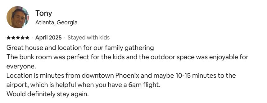 We hope you enjoy your stay at our home and treat it as though it was your own. We love staying here ourselves and taking the time to recharge in the Phoenix sun. We were inspired to call our home The Oasis not only for the park-like backyard space, but also as it serves as a retreat from the everyday grind.