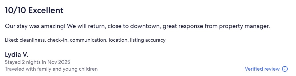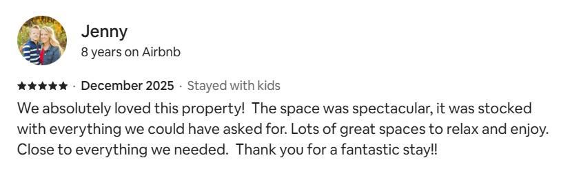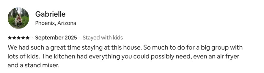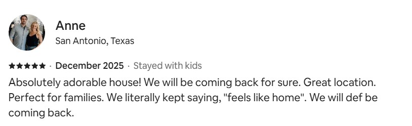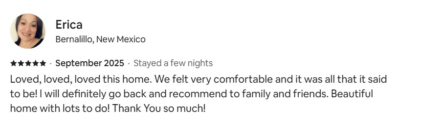 The home offers step up entry with keypad check-in into the three bedroom home. You'll walk into a luxuriously appointed living area. To the right is the dining, a full kitchen with breakfast bar. The kitchen offers full sized appliances, dishes, cookware, Keurig, and a nice open feel. The master bedroom offers a king sized bed, SmartTV, and closet space with stackable washer/dryer. The Rose and Indigo bedrooms offer king and queen sized beds respectively with SmartTVs, and closet space.